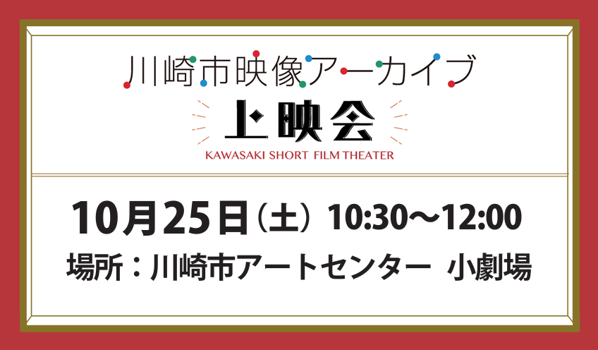 2025年10月25日(土) 川崎市アートセンターで「川崎市映像アーカイブ上映会」を行います。 昨年、麻生区役所で発見された記録映画『かわさき -あの日あの時-…