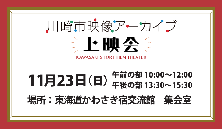 2025年11月23日(日) 東海道かわさき宿交流館にて「市民ミュージアム企画展 ハマ川崎」× 「市映像アーカイブ」コラボ上映会を行います。 川崎市市民ミュージ…