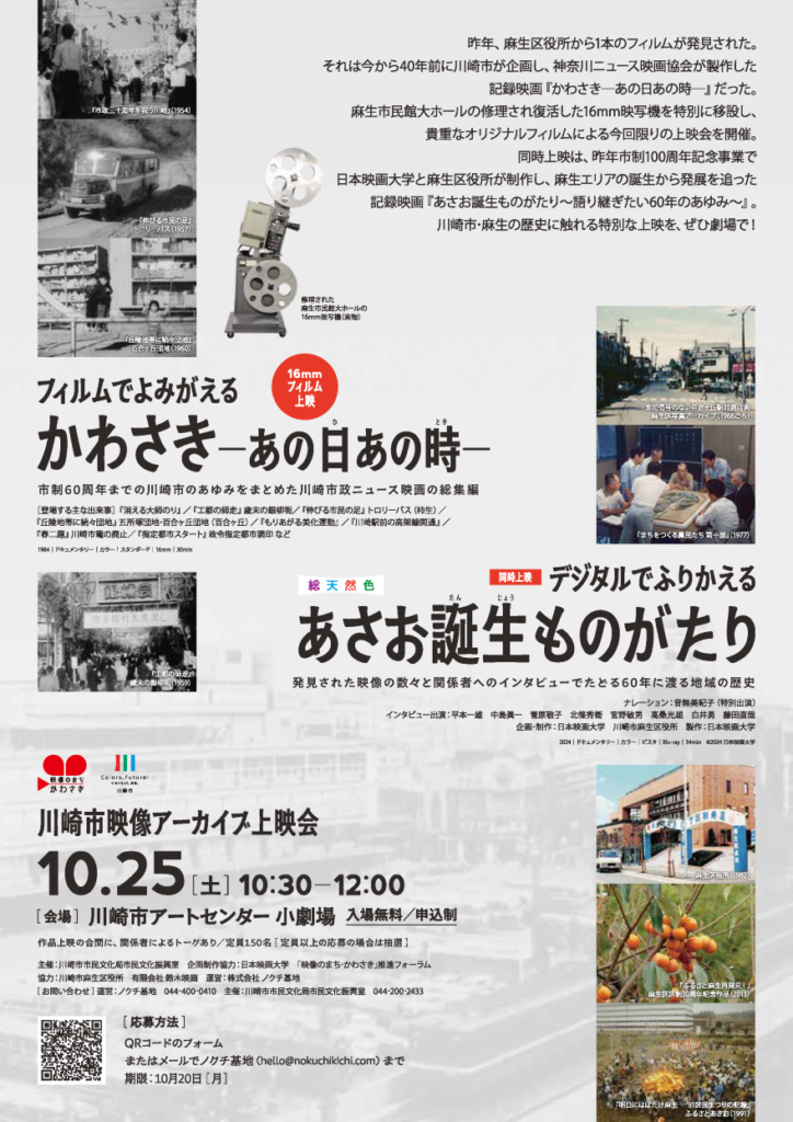 2025年10月25日(土) 川崎市アートセンターで「川崎市映像アーカイブ上映会」を行います。