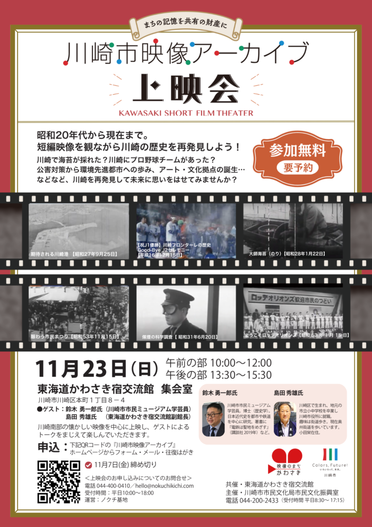 2025年11月23日(日) 東海道かわさき宿交流館にて「市民ミュージアム企画展 ハマ川崎」× 「市映像アーカイブ」コラボ上映会を行います。
