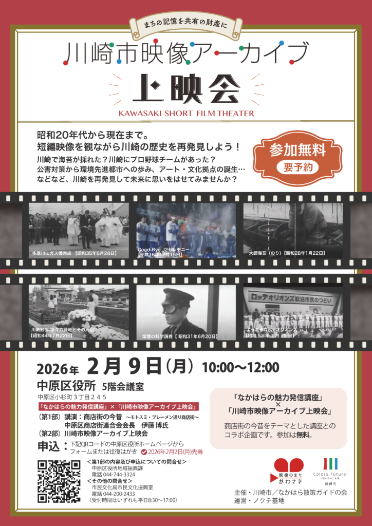 2026年2月9日(月) 中原区役所にて『なかはらの魅力発信講座』とのコラボ上映会を行います。